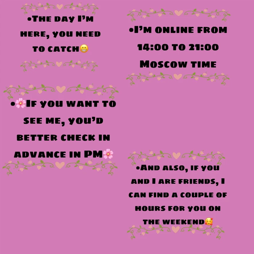 My name is Sofia, I'm 22, and I'm from Russia. I'm quite a creative person, from music to drawing. I love strawberries and am always trying new things. Here you can chat with me or have some fun in an exclusive